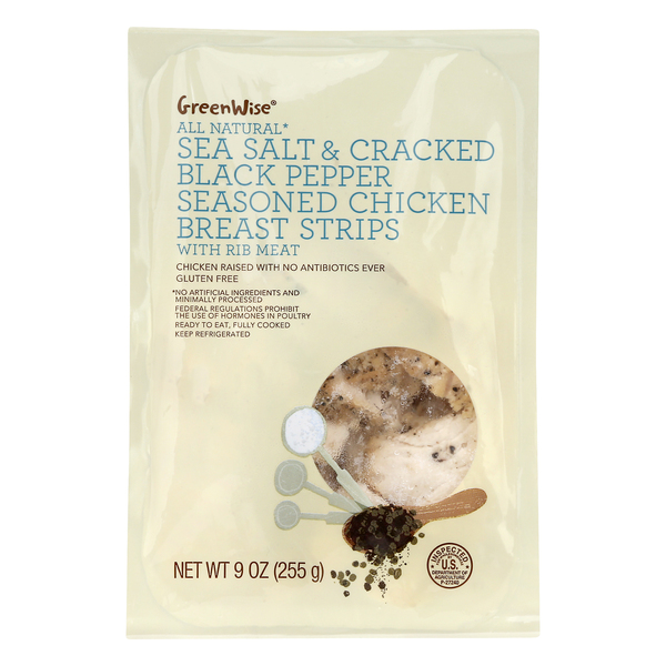 - The manufacturer of Sea Salt & Cracked Black Pepper Seasoned Chicken Breast Strips with Rib Meat, Sea Salt & Cracked Black Pepper is Greenwise.