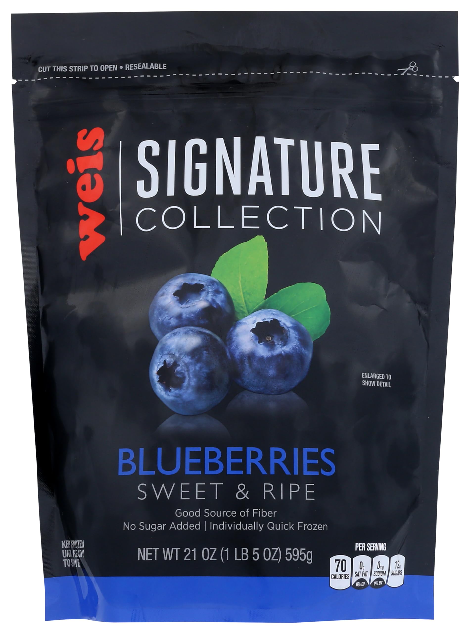 Blueberries is manufactured by Weis Markets, Inc. with a suggested serving size of 1 Cup (155 G) and has 79 calories per serving.