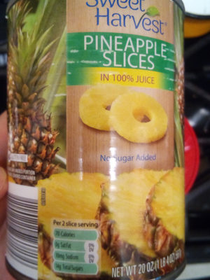 Sweet Harvest, Pineapple Slices is manufactured by Aldi-benner Company with a suggested serving size of 2 Slices (114 G) and has 60 calories per serving.