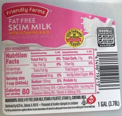 - The manufacturer of Fat Free Skim Milk is Friendly Farms.