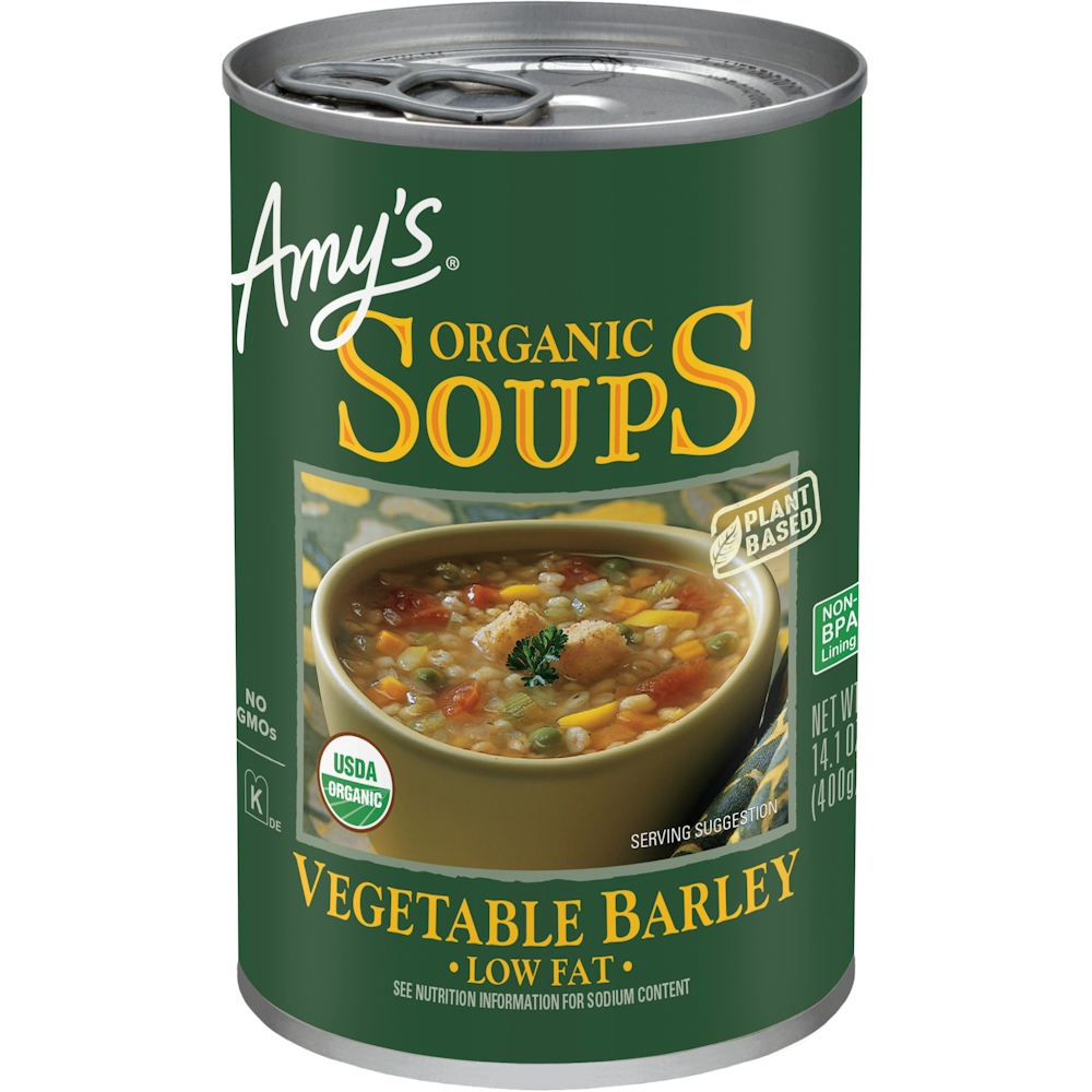 - The manufacturer of Low Fat Vegetable Barley Soup is Amy's.
