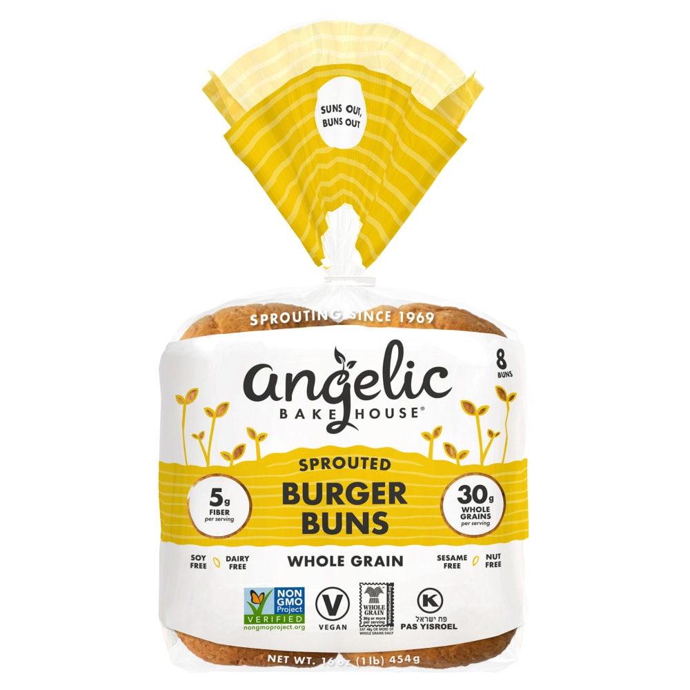- The manufacturer of 7 Sprouted Whole Grains Burger Buns is Angelic Bakehouse.