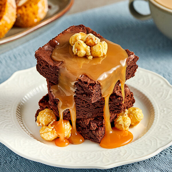 Add a burst of rich, sweet flavor to your desserts and beverages with this Lyons Sweet Indulgence sea salt caramel flavoring sauce! This sauce boasts a smooth, easy-to-drizzle consistency that is perfect for topping, flavoring, or garnishing a variety of treats. Packaged in a convenient squeeze bottle, application is effortless and mess-free, allowing you to add the perfect finishing touch to your creations with ease. The small opening makes it possible to decorate plates with elaborate designs and create dynamic presentations of your decadent desserts! Whether you're looking to enhance the flavor or appearance of your ice cream, beverages, or desserts, this sauce is a versatile and delicious addition to your kitchen arsenal. Designed for use in ice cream shops, bakeries, and coffee shops, this bottle of flavoring sauce is sure to become a staple in your establishment. Try drizzling it over creamy cheesecake, decadent ice cream sundaes, or hot bread pudding. You can also mix it into hot, iced, or blended coffees for an easy way to add premium beverages to your menu. Amplify the taste and appearance of your desserts and beverages with the indulgent taste of classic caramel accented by a hint of sea salt. Perfect for creating eye-catching presentations and adding a touch of sweetness to your menu items, this sauce will make your treats stand out with its bold and delicious taste! With over 150 years of expertise in the food and beverage manufacturing industry, Lyons is a trusted name when it comes to delivering superior products consistently. Lyons is dedicated to bringing freshness and variety to menus with a wide range of offerings. From fruit to chocolate, juice, and beverage products, Lyons has you covered with high-quality options that are sure to satisfy your customers while making your preparation process more efficient. Whether you're looking for ready-to-serve products, beverage concentrates, ingredients, or toppings, Lyons has the perfect solution for your business needs.