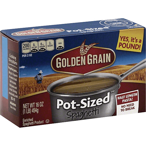 - The manufacturer of Pot Sized Spaghetti is Golden Grain.