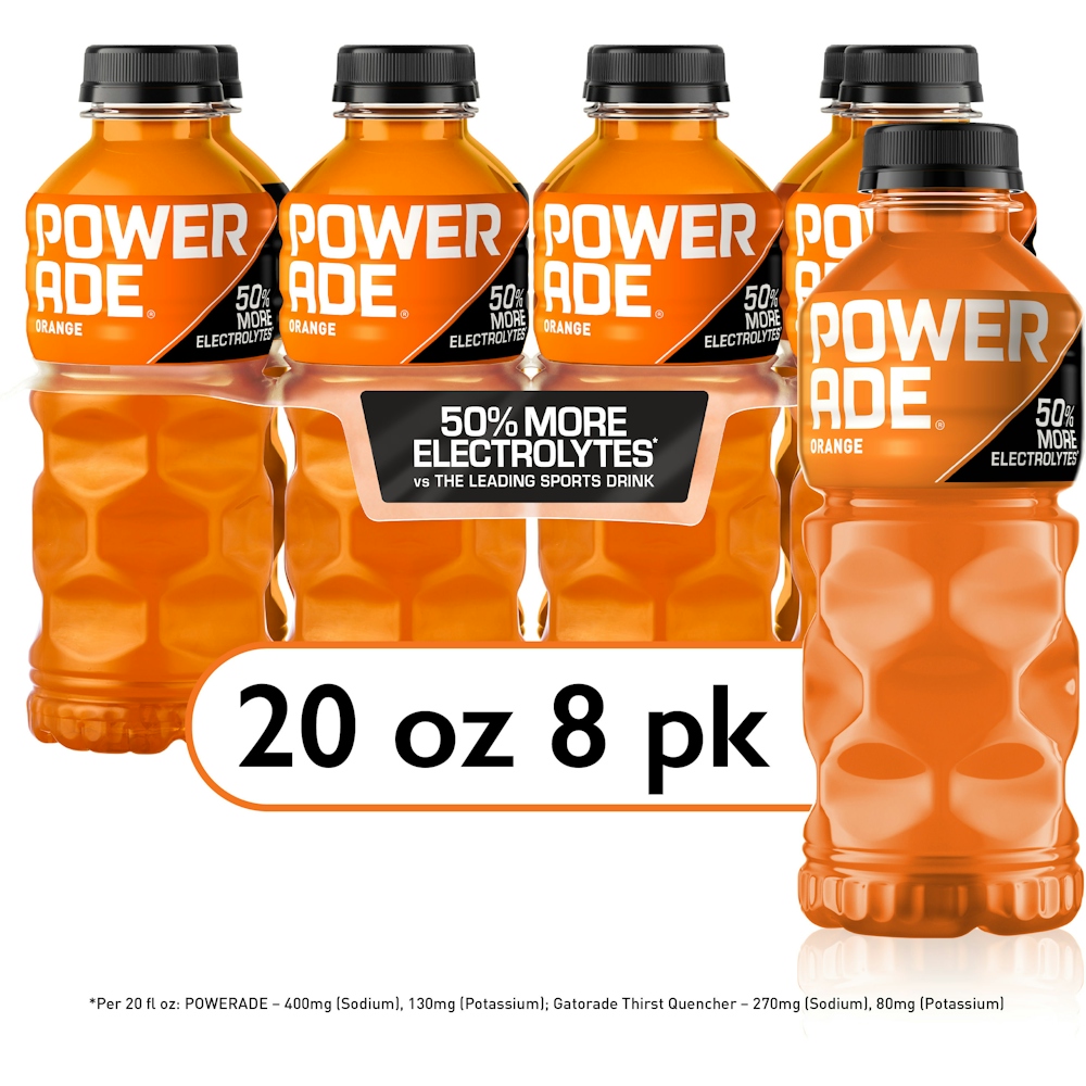 - The manufacturer of Orange Sports Drink is Powerade.