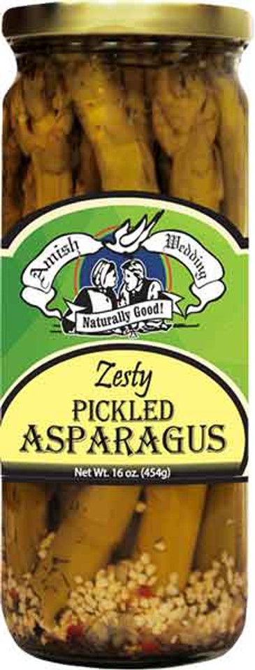 - The manufacturer of Zesty Pickled Asparagus is Amish Wedding.
