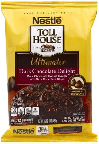 Dark chocolate cookie dough with dark chocolate chips. Bake the very best. Since 1939. 100% real chocolate.