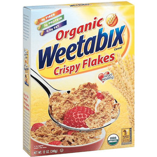 Delicious whole grain cereal. 4 g Fiber; good source of 8 vitamins & minerals; 3 g protein; 0.5 g fat. USDA Organic. Certified organic by Quality Assurance International. The goodness of whole grain Weetabix in a crispy flake. Biscuits or flakes, your choice for organic, whole grain taste and nutrition. Generations of British families have been brought up on Weetabix whole grain biscuits. In fact, it's the best selling breakfast cereal in the United Kingdom. It even inspired the Royal Family, professed Weetabix consumers themselves, to grant the company's chairman a knighthood. But there were worlds to conquer. Introducing Weetabix to the United States was a bit risky. Would Americans welcome a cereal so different from their typical breakfast fare? But it quickly became popular, embraced by the millions of Americans who actually prefer a whole grain breakfast with nothing but the finest organic ingredients. Weetabix is now a favorite among America's active and health conscious citizens. While many Americans clearly love the traditional Weetabix biscuits, some prefer more crunch. So we're happy to offer Weetabix Crispy Flakes. Containing the same delicious organic ingredients as regular Weetabix, it delivers that goodness in a jolly new form. Weetabix helps you stay heart-healthy for life. Stay active and eat healthy to help reduce the factors that lead to heart disease. Weetabix provides pure heart-healthy nutrition. While many factors affect heart disease, experts agree that a diet rich in fruits, vegetables and whole grains, and low in fat, saturated fat and cholesterol, may reduce your risk. Weetabix organic whole grain cereals are an excellent part of a heart-healthy diet. Enjoy the benefits of organic ingredients. We choose the finest organic ingredients for the same reasons you do - to ensure the highest quality and best taste, reduce toxins in the soil and respect our natural environment. Whether biscuits or flakes, Weetabix cereals never contain artificial preservatives, colors, flavors or trans fats. Product of Canada.