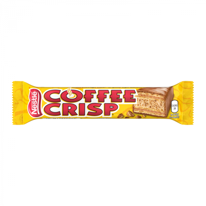 Nestle Coffee Crisp is a popular chocolate bar sold in Canada. It consists of a crunchy wafer covered in layers of coffee-flavored cream and milk chocolate. The chocolate bar was first introduced in Canada in 1939 and has since become a beloved snack for many Canadians. It is known for its unique combination of flavors and texture, making it a popular choice among chocolate lovers.