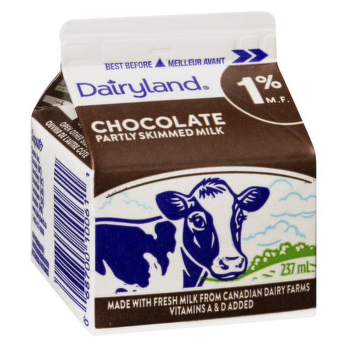 - The manufacturer of Chocolate Partly Skimmed Milk is Dairyland.