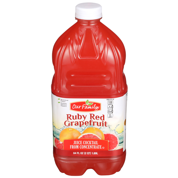 - The manufacturer of Ruby Red Grapefruit Juice Cocktail From Concentrate is Our Family.