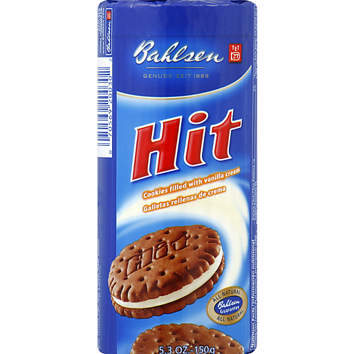 - The product category for Bahlsen, Hit Cookies with a Creme Filling is Cookies.