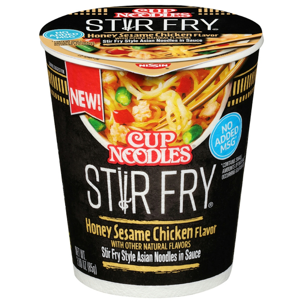 It's not soup, it's Stir Fry! Microwaveable, takeout-style Asian meals ready in minutes. Cup Noodles® Stir Fry™ Honey Sesame Chicken is tossed with stir fry style noodles and high-quality vegetables like green beans and red bell pepper and has no added MSG or artificial flavors. Now you can take your favorite Asian dishes on the go in the cup you adore—from the noodle experts you know and love. Stir fry style noodles tossed in delicious and authentic sauce flavorsMicrowavable cup, cooks in 4 minutesNo added MSG or artificial flavorsTry all of the delicious Cup Noodle Stir Fry flavors including Teriyaki Beef, Korean BBQ, Hot Garlic Chicken, Honey Sesame Chicken, Fiery Korean Chicken and vegetarian Sweet Chili.