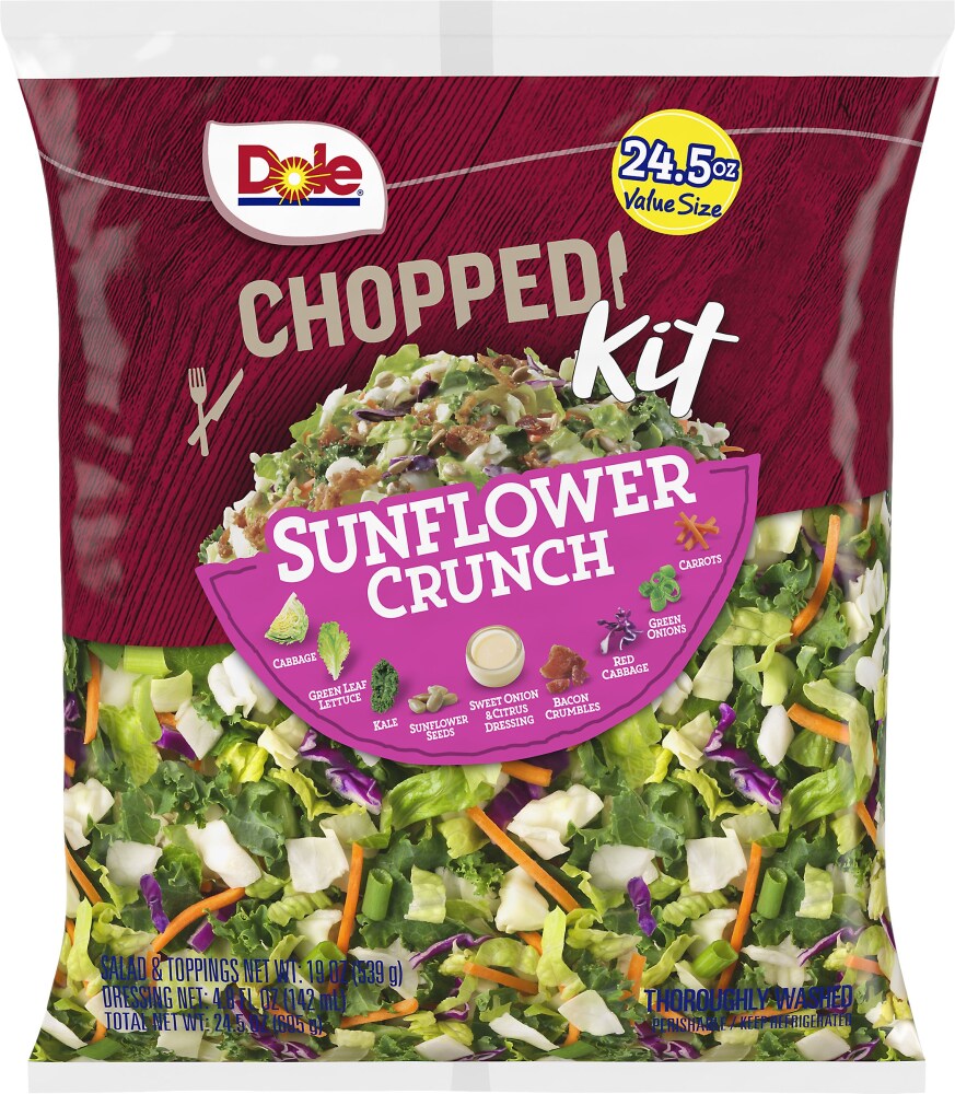 Vegetables: Green Cabbage, Romaine Lettuce, Kale, Red Cabbage, Carrots, Green Onion. Dressing: Sugar, Soybean Oil, Water, Distilled Vinegar, Egg Yolk, Egg White, Salt, Dehydrated Onion, Rice Starch, Natural Flavors, Lemon Juice Concentrate, Paprika Extract, Dehydrated Garlic. Sunflower Seeds: Roasted Sunflower Kernels, Sunflower Oil. Bacon: Pork, Water, Salt, Sugar, Smoke Flavoring, Natural Flavors, Lactic Acid, Starter Culture.