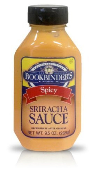 Bookbinder's® Sriracha Sauce. Established 1865. Restaurant style. The old original. Spicy. Net Wt 9.5 Oz (269g).