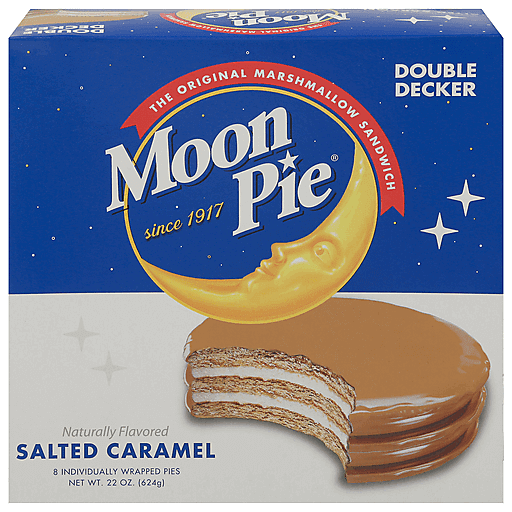 The Moon Pie Salted Caramel Double Decker Marshmallow Sandwich makes for a delicious, fun treat that can be enjoyed by kids and adults alike. These delightful caramel pies are individually packed for grab-and-go access. Available in a bulk case of 8 packs, the Moon Pie Salted Caramel Marshmallow Sandwich is ideal for retail outlets, convenience stores, and supermarkets.