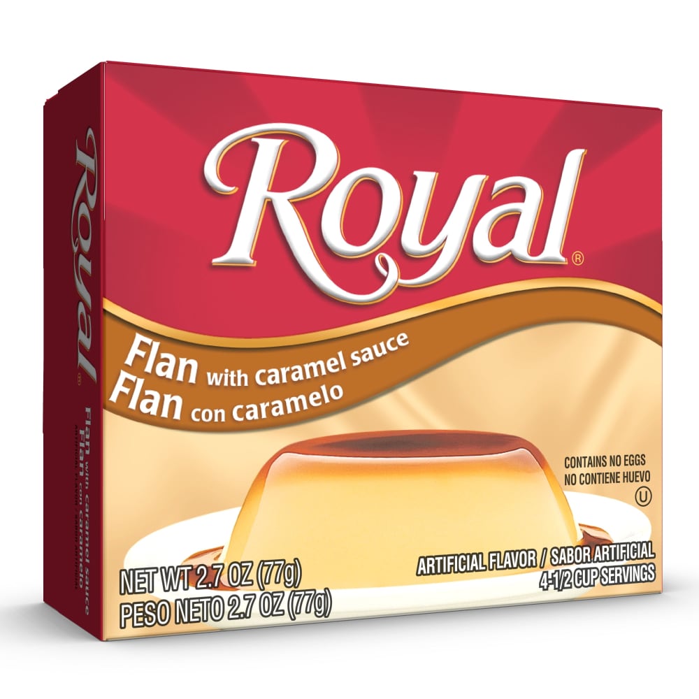 - The product category for Royal, Flan with Caramel Sauce is Pudding & Gelatin Snacks.