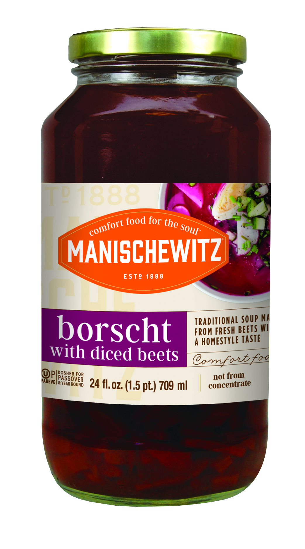 - The manufacturer of Borscht with Diced Beets is Manischewitz.