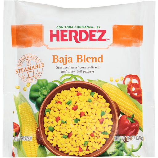 - The manufacturer of Baja Blend Seasoned Sweet Corn with Red and Green Pepper is Herdez.
