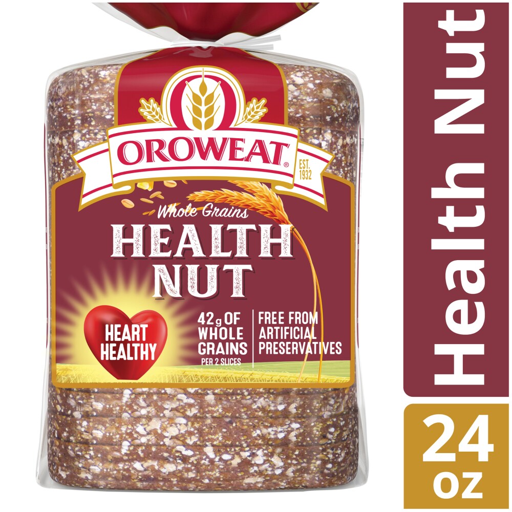 - The manufacturer of Whole Grains Health Nut Bread is Oroweat.
