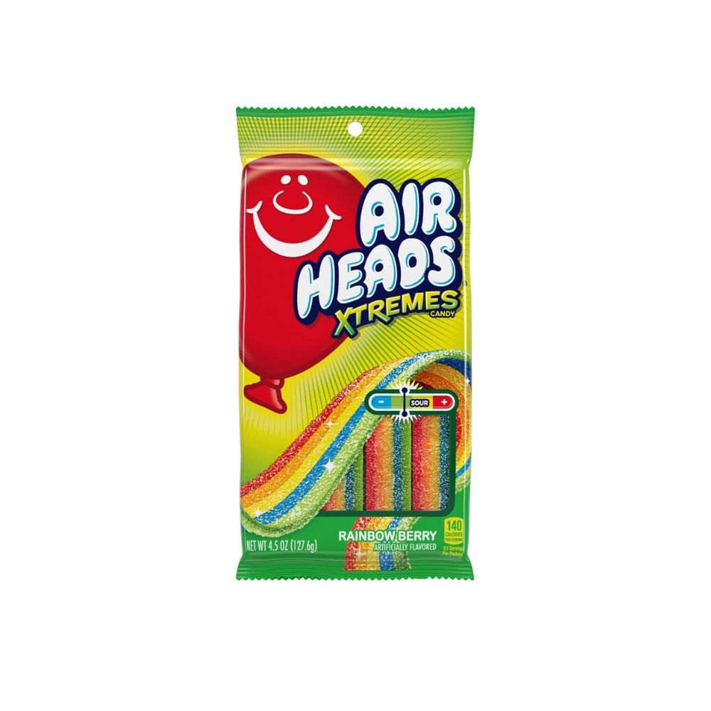 Sour, chewy candy bites Sought-after rainbow berry flavor Vividly colored peg bags. Consumers love Air Heads Xtremes sourfuls for the intense sour flavor that stays sour and always flavorful. Each bite-sized chewy candy satisfies the sweet and sour tooth with a mouthwatering rainbow berry flavor combination of strawberry, blueberry, and raspberry.
