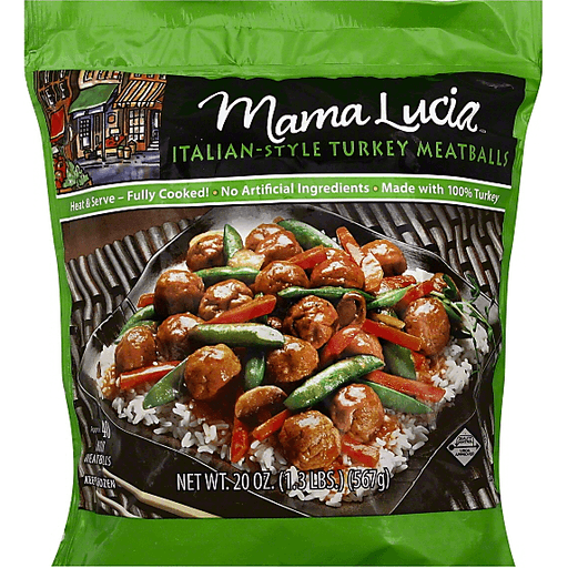 Heat & serve - fully cooked! No artificial ingredients. Made with 100% turkey. Approx. 40 mini meatballs. Quality control. USDA approved. Fully-cooked meatballs. The authentic Italian taste everyone loves! Fully cooked, quick and easy to prepare. Great for meals, parties, tailgating, snacks, anytime. Use in traditional recipes or your own special creations. www.mamaluciameatballs.com. Visit www.mamaluciameatballs.com for these recipe ideas and more! Try our homestyle and Italian-style meatballs!