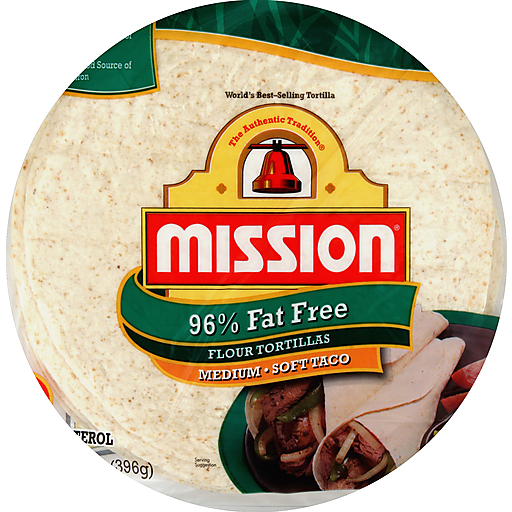 96% fat free soft taco. Contains 180 mg of ALA Omega-3 fatty acids per serving. Good source of calcium. Good source of iron. World's best-selling tortilla. No cholesterol. Mission 96% Fat Free tortillas deliver 180 mg of ALA Omega-3 fatty acids per serving. Enjoy the freshly baked taste of Mission 96% Fat Free Tortillas. Soft and delicious, our tortillas are great for all kinds of meals and snacks, from fajitas to wraps!