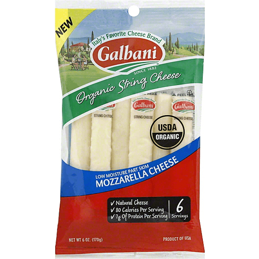 - The manufacturer of Organic Mozzarella String Cheese is Galbani.