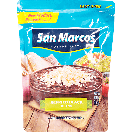 - The manufacturer of San Marcos Refried Black Beans is San Marcos.