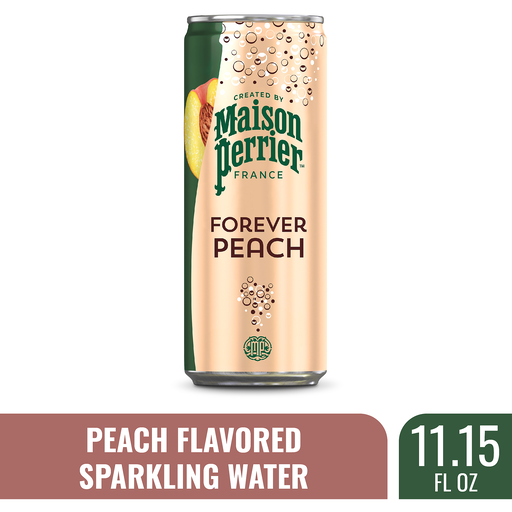Indulge in a refreshing burst of flavor and bold bubbles with Maison Perrier Forever Peach Flavored Sparkling Water. A new premium sparkling water inspired by the iconic legacy of Perrier, Maison Perrier is an unsweetened sparkling water with natural flavors. French and sophisticated, Maison Perrier peach flavored sparkling water is bottled in Vergeze, France. This peach flavored sparkling water contains zero calories and sweeteners, making it a great alternative to sugary soda, tonic water, seltzer water, other carbonated water or club soda water. Maison Perrier sparkling water is a deluxe water that is the perfect ingredient for extraordinary mixed drinks or delicious non-alcoholic mocktails. Enjoy one at home or on the go. For peak refreshment, enjoy these cans of sparkling water slightly chilled. For more refreshment from the makers of Perrier water, try other delicious flavors, including Maison Perrier Lime Flavored and Maison Perrier Blackberry Flavored Sparkling Water. Delight your taste buds with this Maison Perrier Forever Peach Flavored Sparkling Water. Forever irresistible. Forever flavorful. Forever Peach.