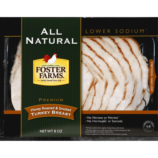Premium. Family owned since 1939. All natural. Lower sodium (35% less sodium than regular turkey breast with broth). No nitrates or nitrites (Product does not contain any nitrate or nitrite except for that found naturally occurring in celery juice). No hormones (Federal regulations prohibit the use of hormones in poultry) or steroids. Inspected for wholesomeness by US Department of Agriculture. Easy open. Resealable.