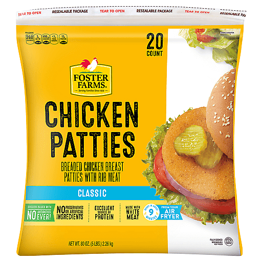 - The manufacturer of Chicken Patties is Foster Farms.
