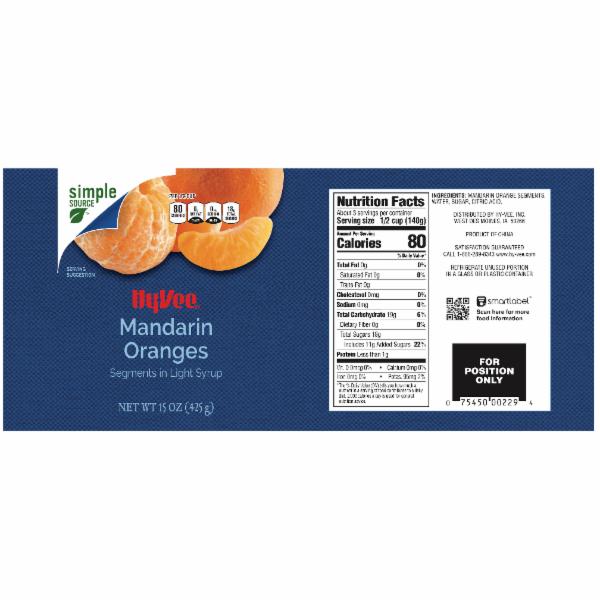- The manufacturer of Mandarin Oranges Segments in Light Syrup is Hy-Vee.