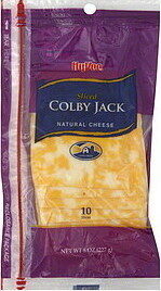 Hyvee, Deli Style Colby Jack Cheese Slices is manufactured by Hy-vee, Inc. with a suggested serving size of 1 Slice (23 G) and has 80 calories per serving.