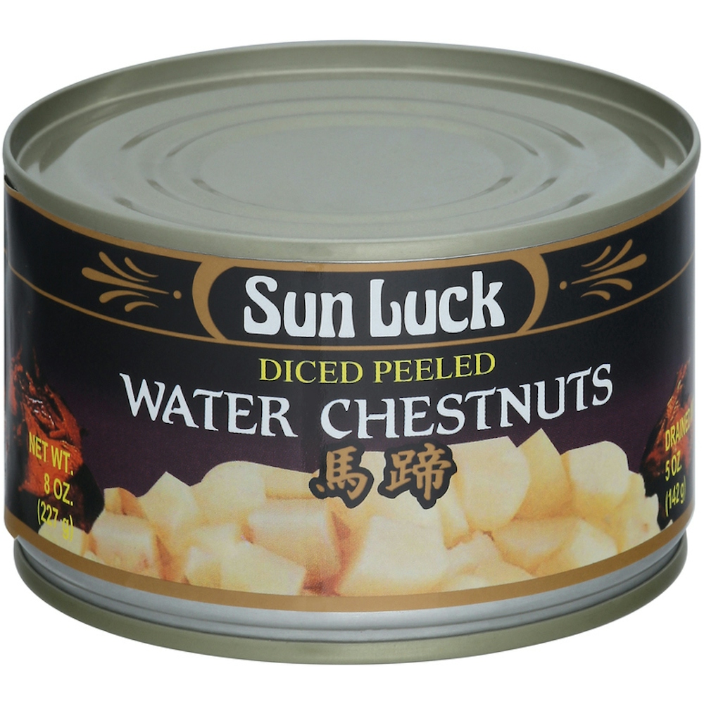 - The manufacturer of Diced Peeled Water Chestnuts is Sun Luck.