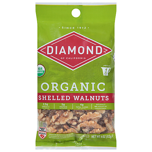 - The manufacturer of Organic Shelled Walnuts is Diamond.