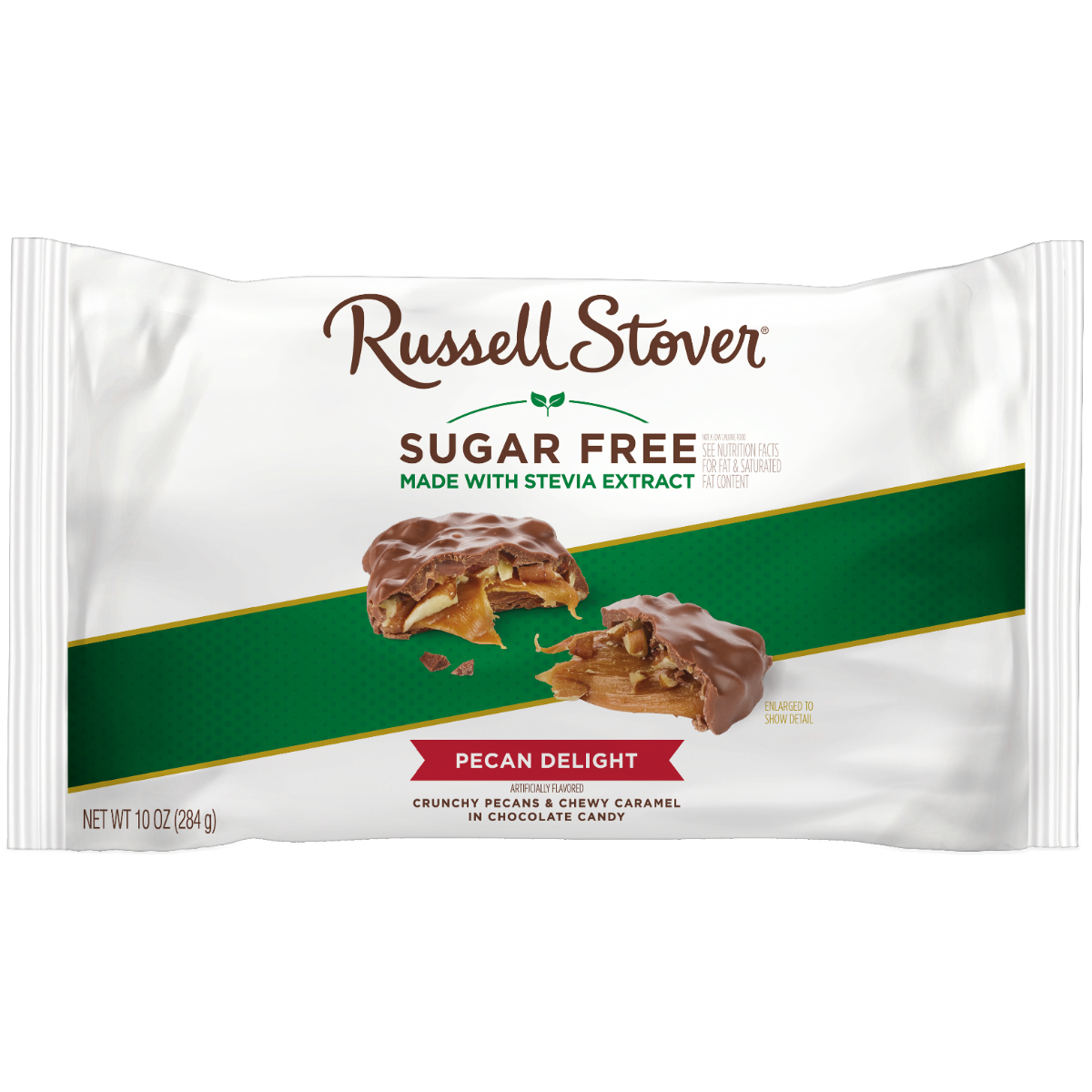 - The manufacturer of Sugar Free Pecan Delights Milk Chocolate is Russell Stover.