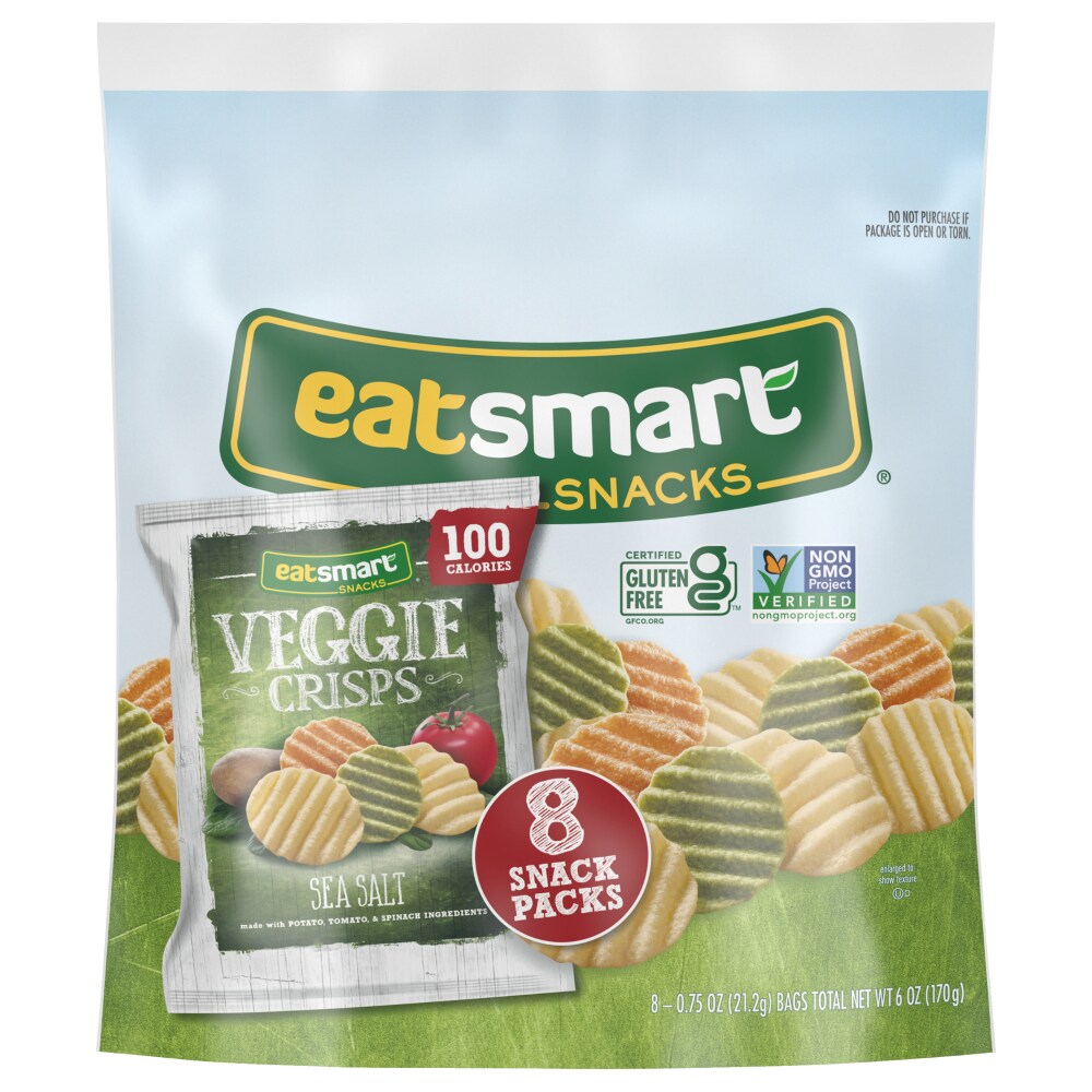 Eatsmart Veggie Crisps Blend Potato, Tomato and Spinach so you can savor their delicious vegetable flavors. The crunchy ridges make veggie crisps the perfect complement to your favorite dip or salsa. With every bite, you will taste how this light and airy vegetable based snack is a great choice. So go ahead, eat smart.. And enjoy!