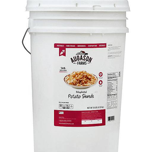 - The manufacturer of Dehydrated Potato Shreds is Augason Farms.