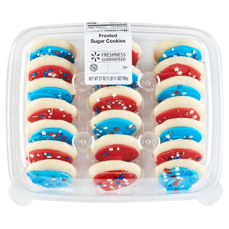 Show your love for red, white, and blue this summer with Freshness Guaranteed frosted sugar cookies. These tasty cookies feature a soft sugar cookie topped with blue or red frosting. They even have red, white, and blue star-shaped sprinkles on top for an extra fun touch. These sugar cookies are great to serve to guests at your next party or get-together, bring to a friend's house, share with co-workers, or a sweet treat to indulge in on any day. They come in a reclosable container to help maintain freshness in-between snacking. The container comes with 20 cookies so there is plenty to share with friends and family. Add a bit of sweetness to your day with Freshness Guaranteed Frosted Sugar Cookies. Freshness Guaranteed provides you and your family with high-quality fresh food that saves you time, many of which are cooked fresh or prepared in stores. Convenient solutions with value-added in every spark fresh item.