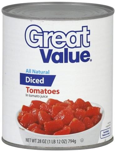 - The manufacturer of Diced Tomatoes in Tomato Juice is Great Value.