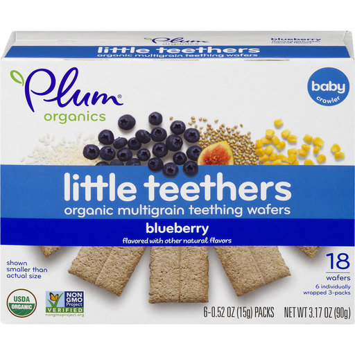 Plum Organics® Little Teethers Blueberry-.52oz Wafer/6-Count Box - Little ones can't wait to sink their gums into these delicious teething wafers. Delight budding palates with unique flavors as you encourage self-feeding. USDA Certified OrganicNon-GMONaturally FlavoredBaby Crawler StageNon-BPA Packaging.