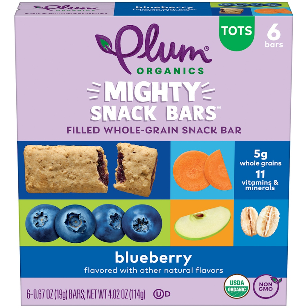- The product category for Plum Organics Mighty Snack Bars Blueberry 6-Count Box/.67Oz Bars is Baby & Toddler Food.
