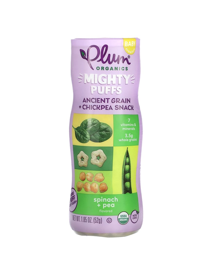 - The product category for Plum Organics Mighty Puffs Spinach + Pea 1.85Oz Canister is Plums.