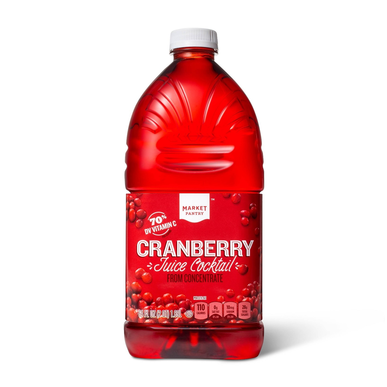 Enjoy the crisp and tart flavor of fresh cranberries with the Cranberry Juice Cocktail from market pantry™. Made from juice concentrate, this ready-to-drink cranberry juice comes in a half-gallon bottle with eight servings, each loaded with 70% of your daily vitamin C to help you hit your nutrition goals with every sip you take. Simply pour a glass of chilled cranberry juice cocktail whenever you want some quick refreshment to quench your thirst, add it to a fruit smoothie or create a delicious punch with sparkling water and lemonade for crisp, tart flavor.