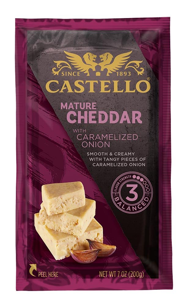 - The manufacturer of Caramelized Onion Mature Cheddar is Castello.