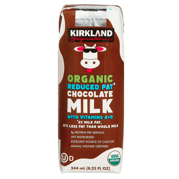 - The manufacturer of Organic Reduces Fat Chocolate Milk is Kirkland Signature.