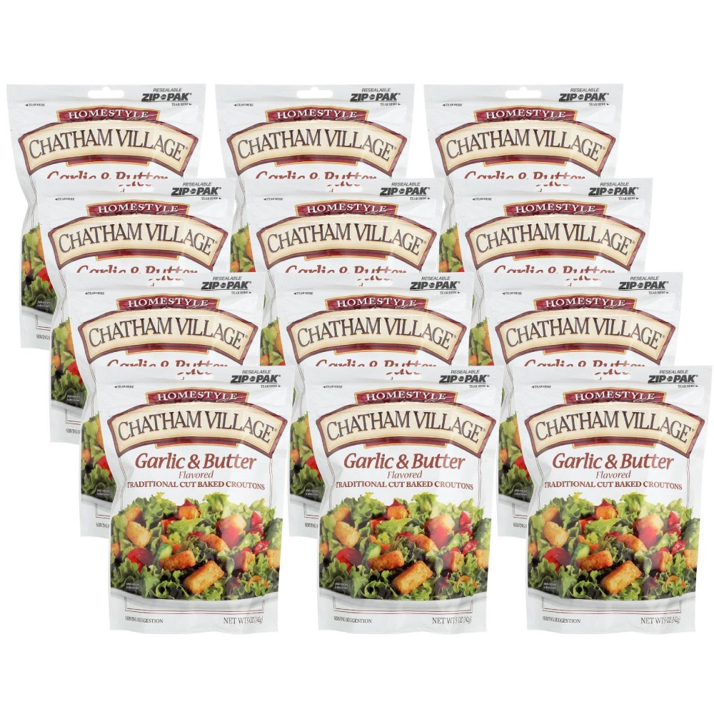- The product category for Chatham Village, Traditional Cut Baked Croutons, Garlic & Butter is Croutons.