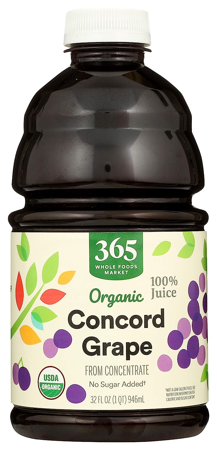 - The certification status for 365 Everyday Value, Organic 100% Juice, Concord Grape includes USDA Organic.