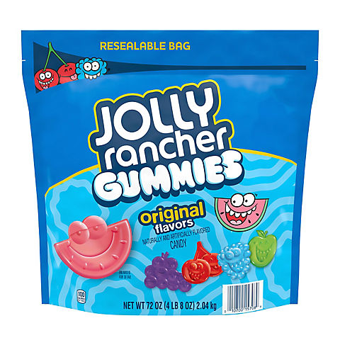 A mix of five fruity favorites for the whole family in just one box of chewy gummies? You wouldn't have thought it possible if you didn't know Jolly Rancher candy. This box of fruit-flavored gummies is full of fun, flavorful fruit shapes each member of the family will be happy to choose from. Featuring blue raspberry, green apple, cherry, grape and watermelon flavors, Jolly Rancher gummies offer a combination of the undisputed original flavor classics you know and love. Keep this box with you on the go so that you can share with friends, co-workers or family members throughout the day - but don't forget to save some gummies for yourself during all that sharing! These fruit candies make the perfect covered candy bowl display all year thanks to vibrant colors and attractive Jolly Rancher fruit shapes. They're also great treats for Christmas, Easter, Valentine's Day and Halloween party favors. If you want a small candy with a big taste to keep your taste buds busy during movie nights, lunch hours and snack breaks, Jolly Rancher chewy gummies are the treat for you.